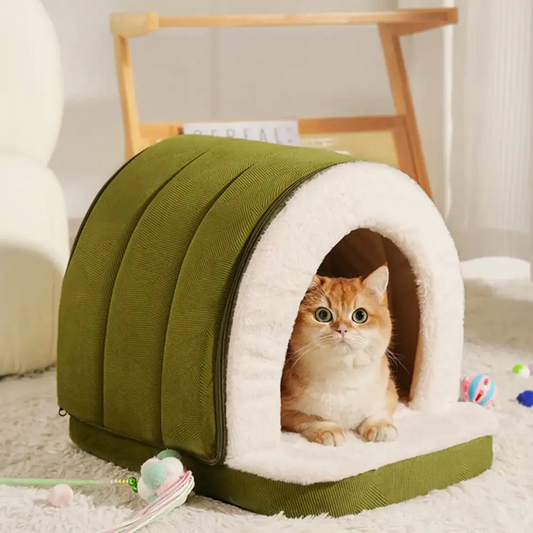 Enclosed Warm Pet Sleeping Den for Cats and Small DogsRetry